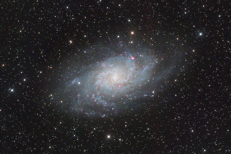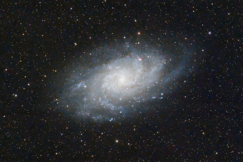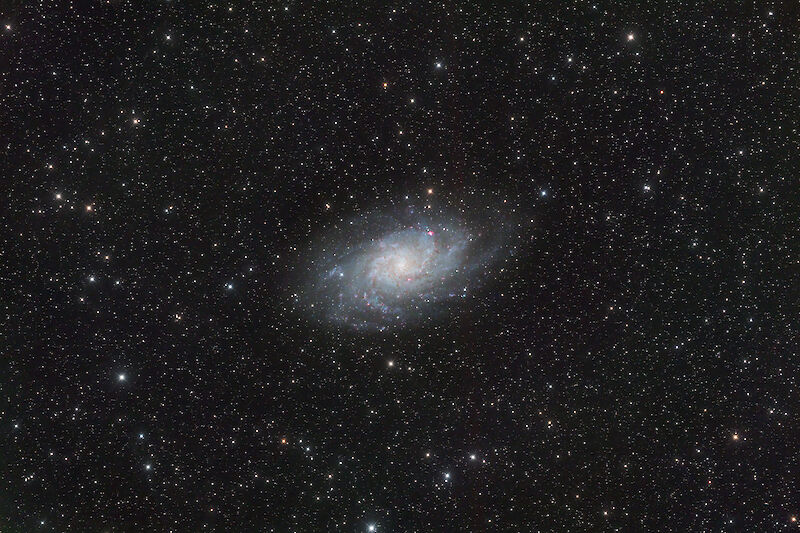 The Triangulum Galaxy is just a bit further away compared to the Andromeda Galaxy but much smaller and not to observed with the naked eye. This picture is also only a crop of the original framing at a focal length of 360mm:.