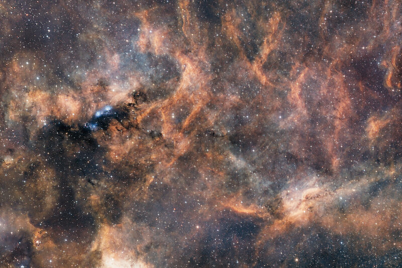 In the bottom right you'll find LBN278, the Propeller Nebula. My edit washes out some details, check out the H-Alpha image above where it is clearly recognizable: