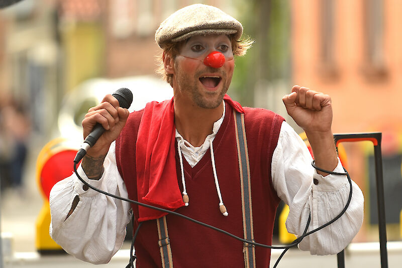 Das Programm "Der Onkel und sein Neffe - Gold" der Agentur Andersland auf dem Gallusmarkt in Büdingen.