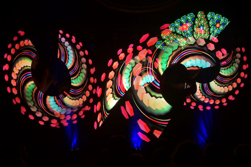 Spektakuläre Lichtjonglage bei der Andersland Gala 2023 in der Kulturhalle Stockheim. Mehr Informationen und Künstler finden sich bei der Künstleragentur Andersland.