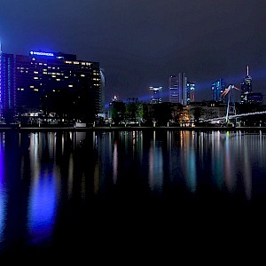 This is a normal shot without any DRI. As with most of my night-images it was recorded in RAW format to decide later about whitebalance and have more freedom for contrast and color adjustments. This is also a cut of a large pano, which I only had done for resolution, a normal lens would give exactly the same framing.