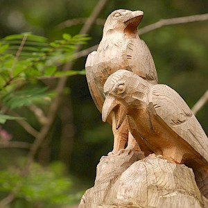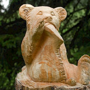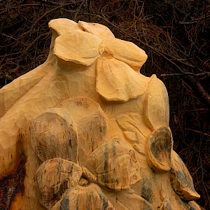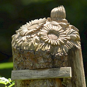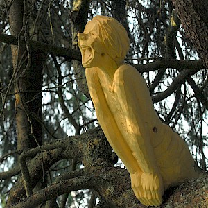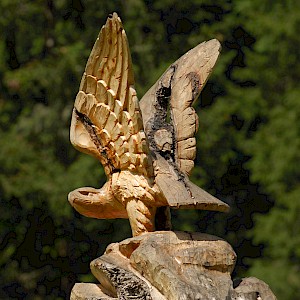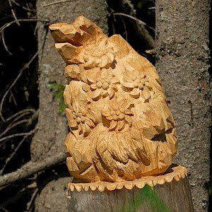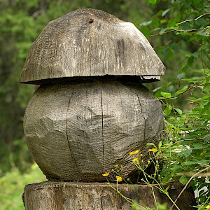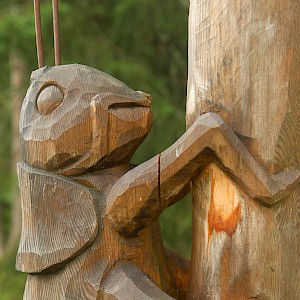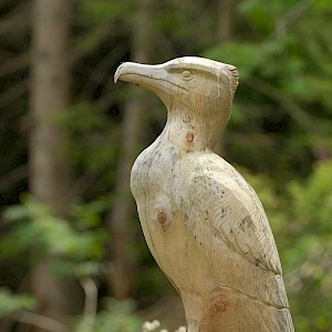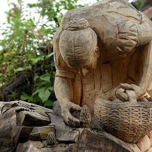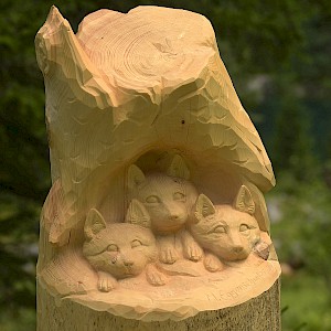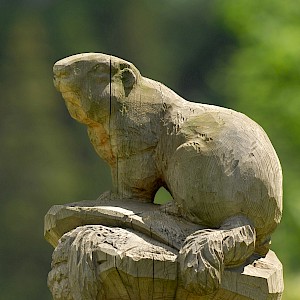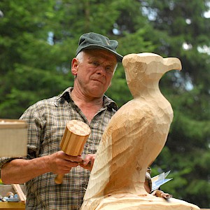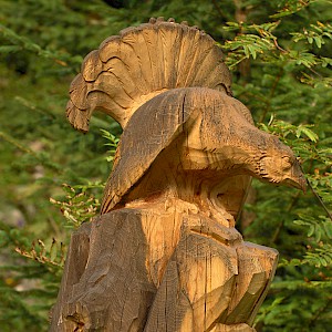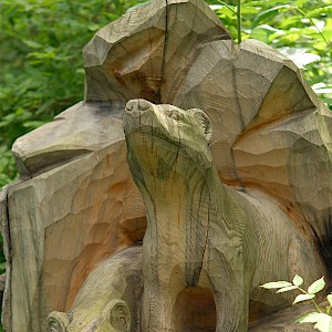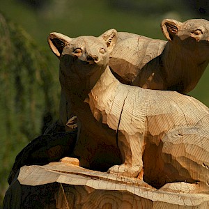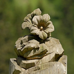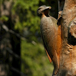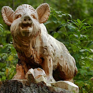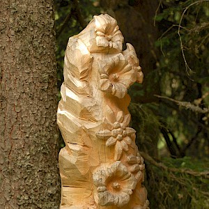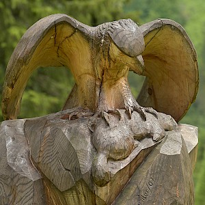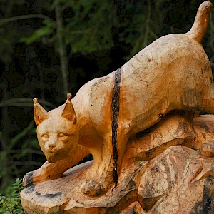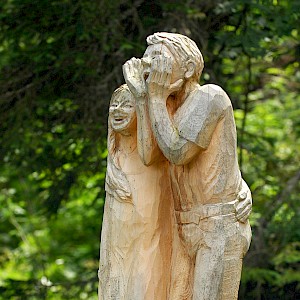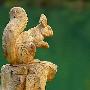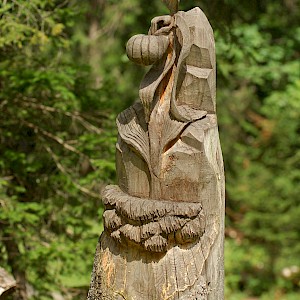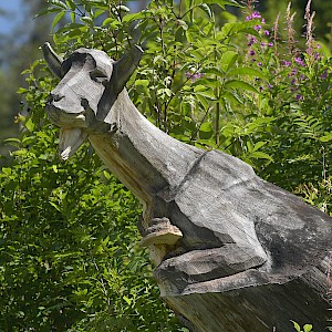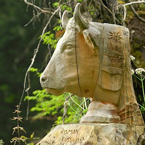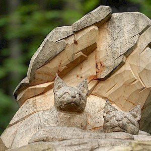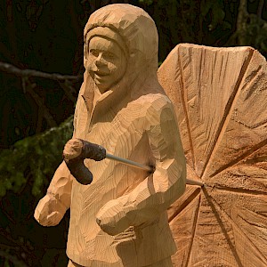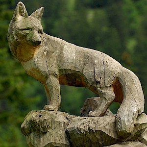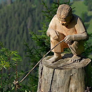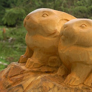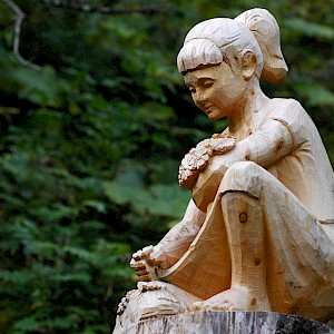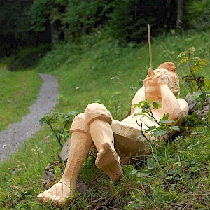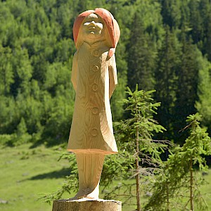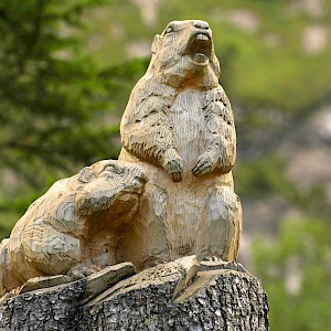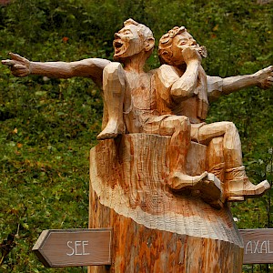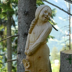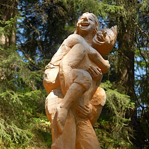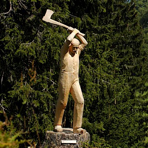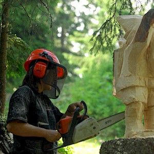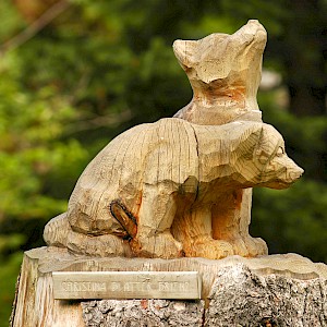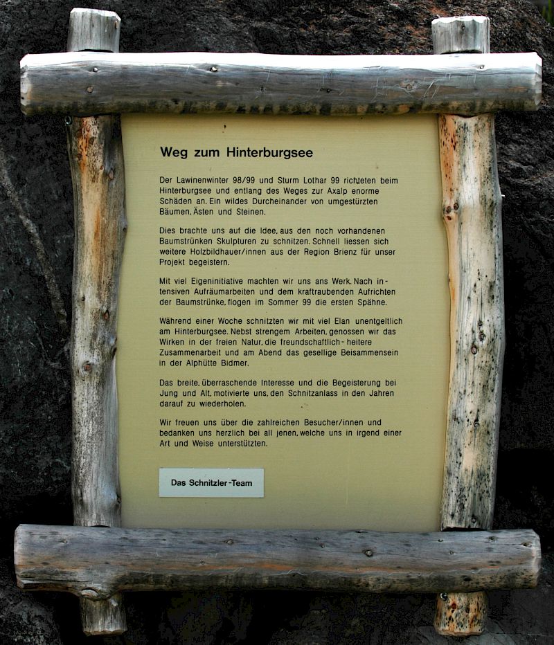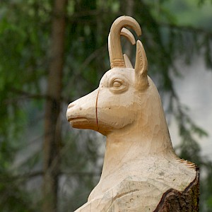 The story behind began in winter 1998/99 where snow avalanches and storm Lothar caused severe damage to the nature. The local wood carvers decided to keep the remaining trunks and create sculptures from it.