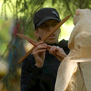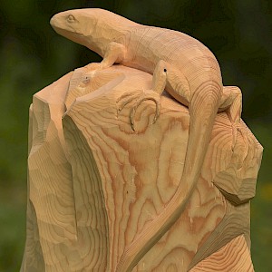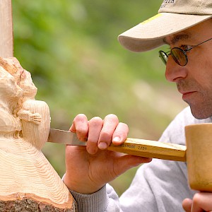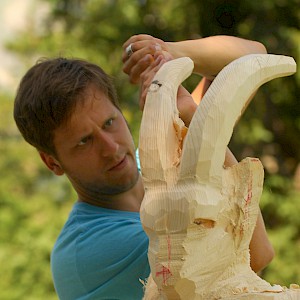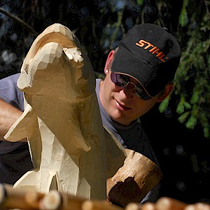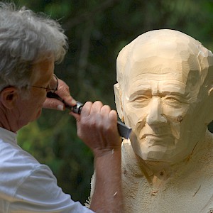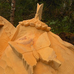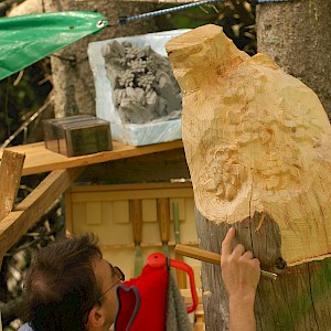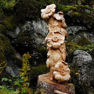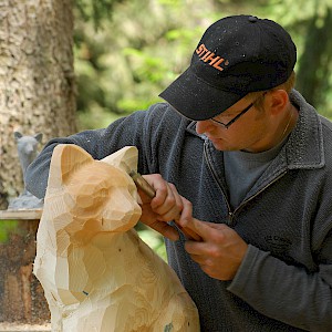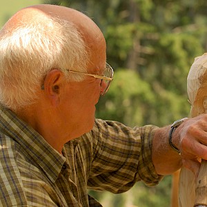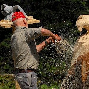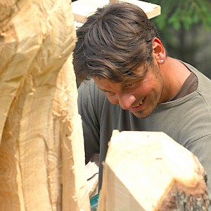 After intense cleanup, carving began in summer '99. Within a single week the first figurines were finished at Hinterburgsee. Due to much interest and excitement it was decided to repeat this during the following years. Until now.