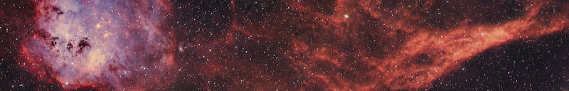The image above shows the Tadpole Nebula SH2-236 on the left and a larger patch of H-Alpha towards the right, named SH2-230.