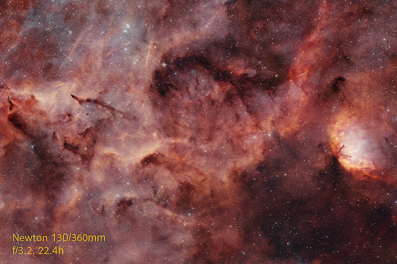 The Newtonian still has a big advantage when collecting luminance and broadband color, the APO's narrowband stacks exposed more details and smoother gradients despite the shorter integration time. This could not be explained by the longer focal length.