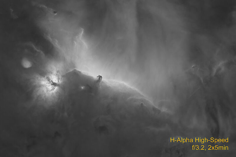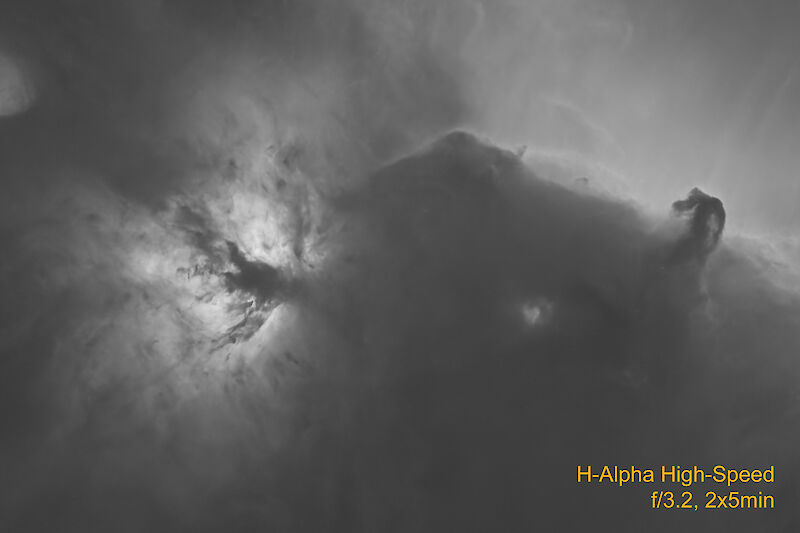 So I ordered the highspeed version of my existing 3nm Hydrogen-Alpha filter and did some direct comparisons in the same night and identical conditions. My target of choice was the region of the Horsehead Nebula (IC434), as this area contains both faint smooth and sharp, high contrast elements.