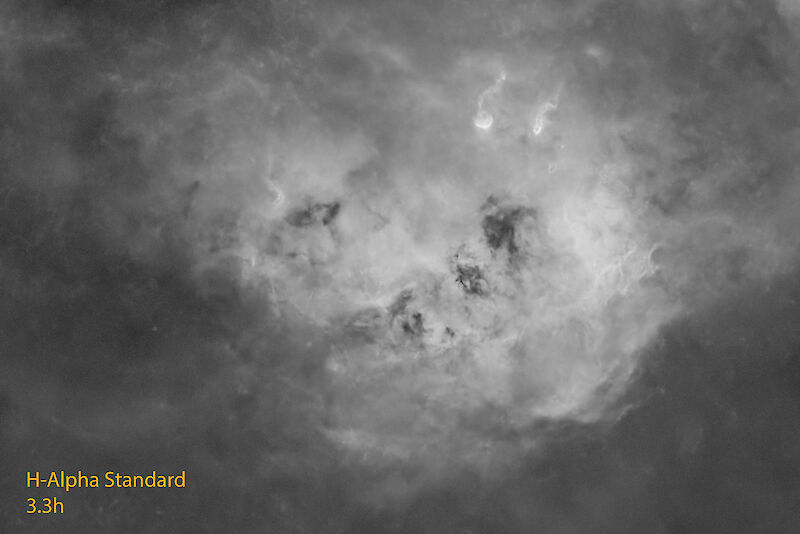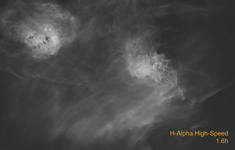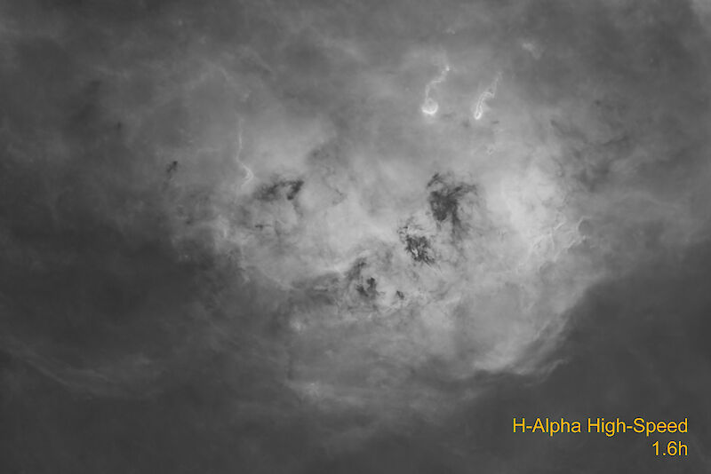 The speckled regions are primarily remnants from the star halos due to larger humidity, the fainter regions are still much better and more detailed in the image using the highspeed filter. Even with half the integration time.