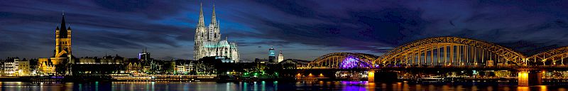 You may already found the left part of this panorama in the night-section. To get a similar view with a single exposure you'll need a real wide angle and will get some distortion like bowed towers. The images of this panorama were taken with a focal length of 100mm and are free of distortion.