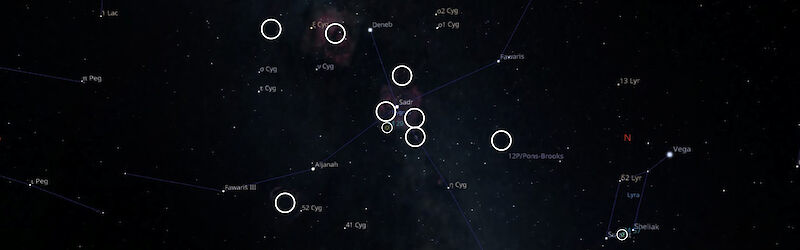 Clicking on a hotspot will open the respective image. Smaller circles refer to objects of my Normalized Messier Catalog, the larger circles refer to my regular astro images.