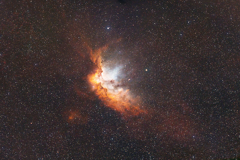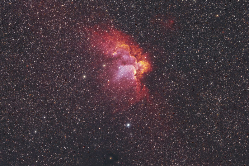 Der Zauberernebel ist ein Emissionsnebel um den offenen Sternhaufen NGC7380. Der Nebel selber leuchtet nur sehr schwach und erfordert einen dunklen Himmel und verhältnismässig lange Belichtungszeiten, um ihn fotografisch zu erfassen.