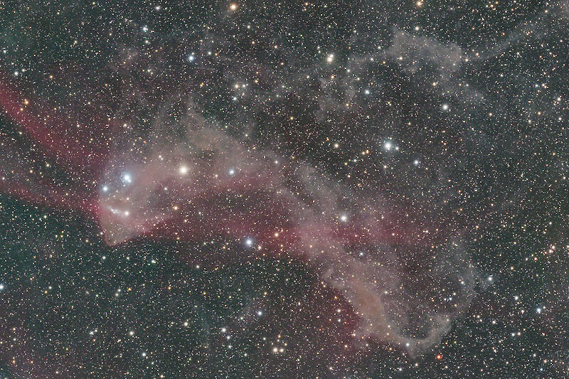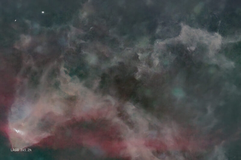 Einige der Strukturen der Molekülwolke sind auch in den Schmalband-Daten erkennbar, diese könnten ggf. durch eine Kontinuum-Subtraktion herausgerechnet werden, was ich hier allerdings nicht gemacht habe.