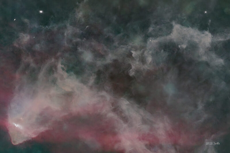 Recht interessant ist hier der feine Rand ionisierten Wasserstoffs um die vordere Kante links unten im Bild.