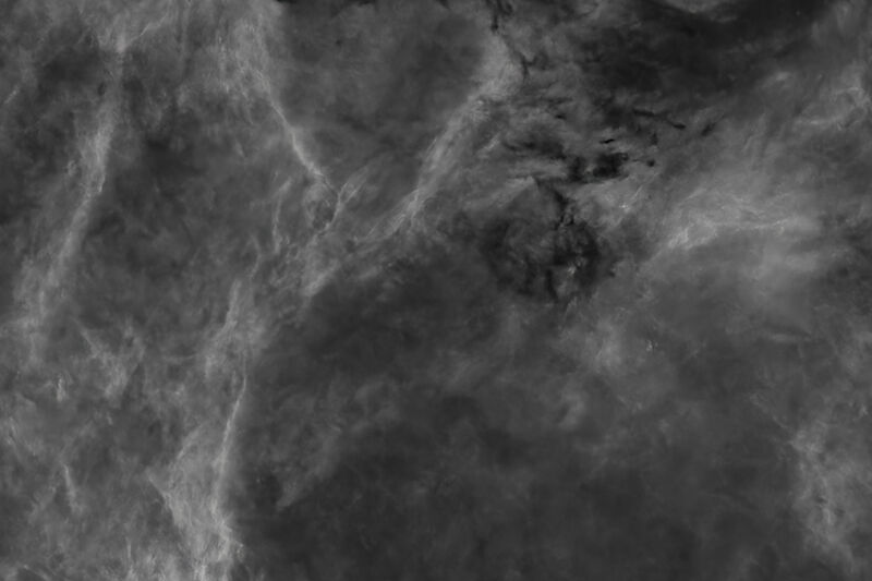 Die ungewöhnlich lange Integrationszeit in Schwefel wird verwendet, um den hellen Flächen in H-Alpha etwas Struktur zu verleihen. Die Betrachtung des S2-Layers ist entsprechend interessant, wie dieser Ausschnitt zeigt: