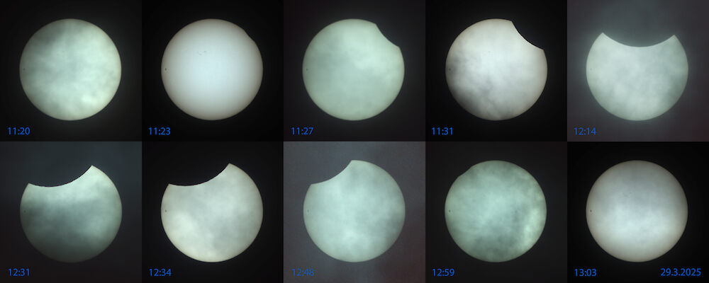 Am 29.3.2025 war in weiten Teilen Europas eine partielle Sonnenfinsternis zu beobachten, zumindest wenn keine Wolken im Weg sind. An meinem Standort war es dann auch eher eine Total-Bedeckung, welche pünktlich zum Beginn einsetzte und kurz danach wieder verschwand.