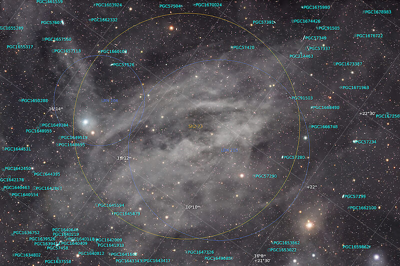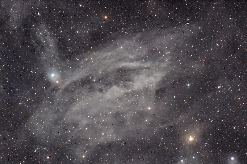 Außerdem sind in der Aufnahme mit der Mono-Kamera deutlich mehr Strukturen im Nebel erkennbar, auch von den Hintergrundgalaxien werden deutlich mehr erkannt.