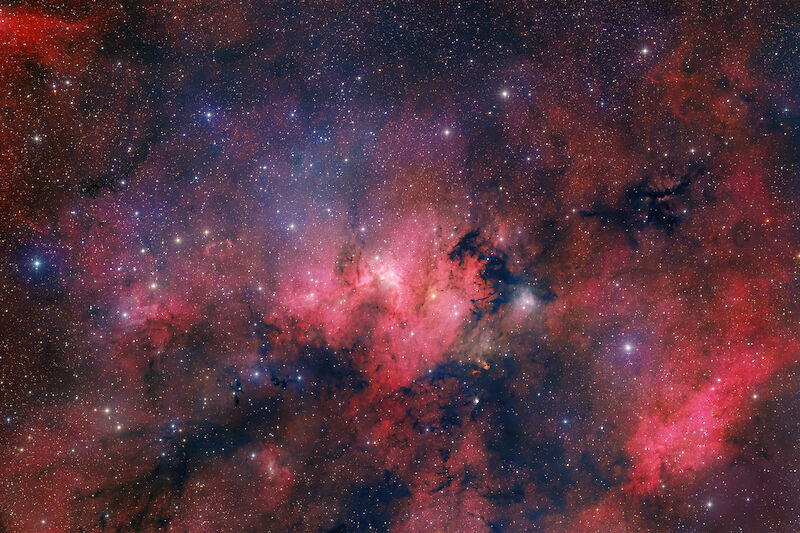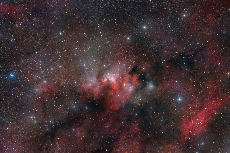 Der Höhlennebel ist teil einer ausgedehnten Molekülwolke im Sternbild Kepheus.