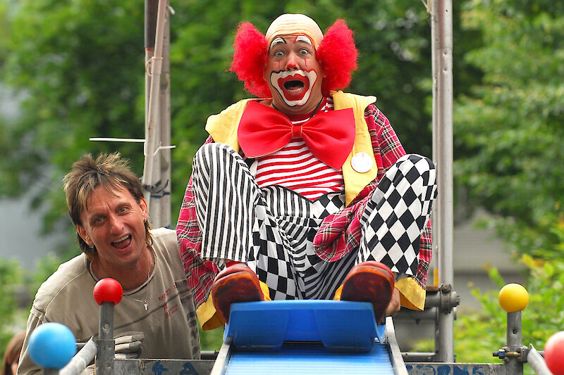 Zauberclown Arturo (www.funtastics-events.de) auf der Rollenrutsche. Wieder ein schönes Beispiel dafür, dass man manchmal einfach zur richtigen Zeit und am richtigen Ort eine Kamera dabei haben muss.
