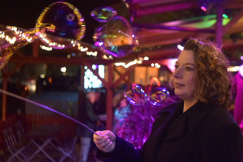 Seifenblasenmagie bei der Andersland Gala 2023 in der Kulturhalle Stockheim. Mehr Informationen und Künstler finden sich bei der Künstleragentur Andersland.