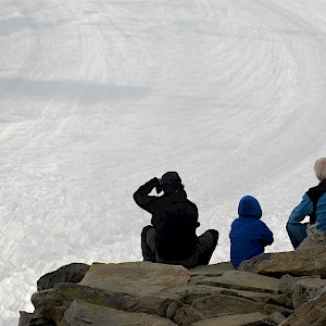 Den großen Aletschgletscher kennt wahrscheinlich jeder, der die Schweiz kennt. Ich empfand aber gerade diesen Ausschnitt der gebannt blickenden Zuschauer viel interessanter.