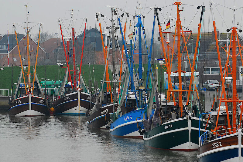 Die farbigen Masten der Fischkutter sind auch bei trübem Wetter ein Hingucker.