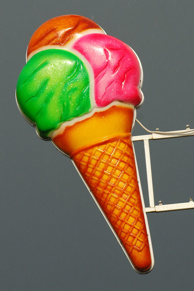 Mit der richtigen Beleuchtung und dem passenden Hintergrund (hier das aufziehende Unwetter) liefert sogar eine Leuchtreklame ein interessantes Motiv. Genau, auch hier regnet es bereits.