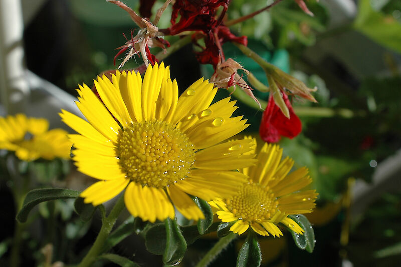 Selbst einfache Blüten wirken gleich viel interessanter, wenn man noch ein paar Farb-Tupfer im Bild verteilt.