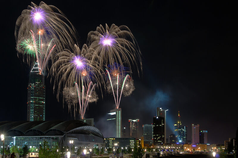 Diese beeindruckende Aufnahme entstand beim Hochhausfest 2007 in Frankfurt (und ist selbstverständlich keine Montage).