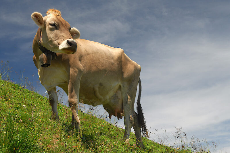 Mögen Sie auch keine Von-unten-nach-oben-Kuh-Aufnahmen-mit-blauem-Himmel? In diesem Fall half ein Polfilter weiter, um Wolken hinzuzaubern, welche mit bloßem Auge definitiv nicht sichtbar waren.