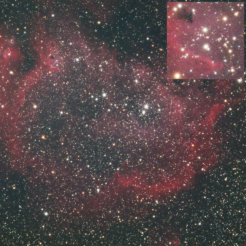 Und zum Abschluß noch einmal die vollständige Aufnahme des Seelennebels samt Schmalbanddaten, wie es vermutlich nur mit einem monochromen Setup zu realisieren ist: