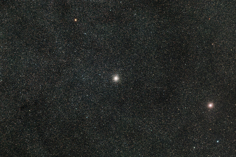 Die folgende Aufnahme zeigt das gesamte Bild in einer manuellen Bearbeitung (580mm, ASI2600MM, LRGB 1h): Der helle Stern ist Kaus Borealis und gehört zum Sternbild Schütze.