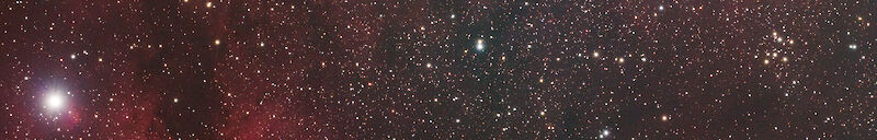 M29 sitzt mitten in einer Region mit Wasserstoff, daher das rötliche Leuchten im H-Alpha Spektrum.