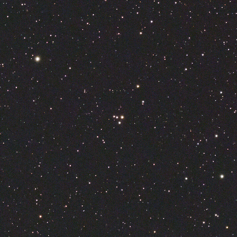 Die folgende Aufnahme zeigt das gesamte Bild in einer manuellen Bearbeitung (580mm, ASI2600MM, LRGB 1h). M73 befindet sich in der rechten unteren Ecke während links noch der Sternhaufen M72 zu sehen ist.