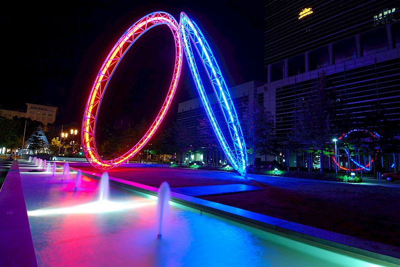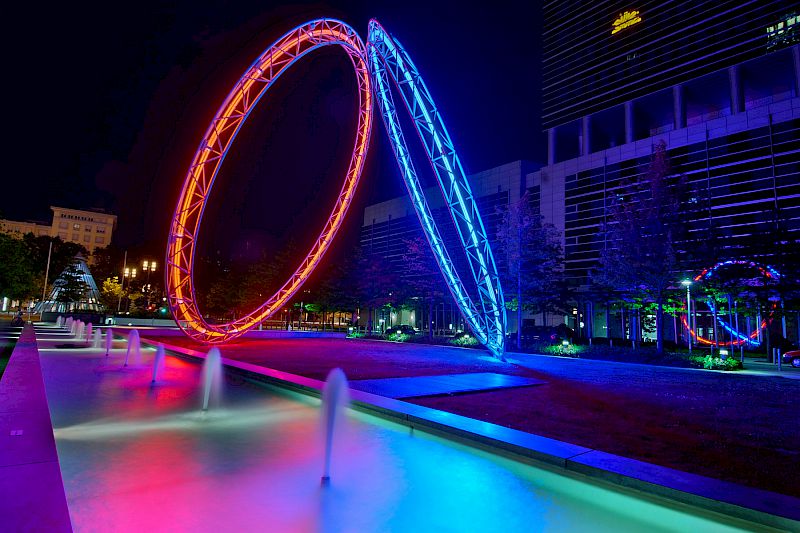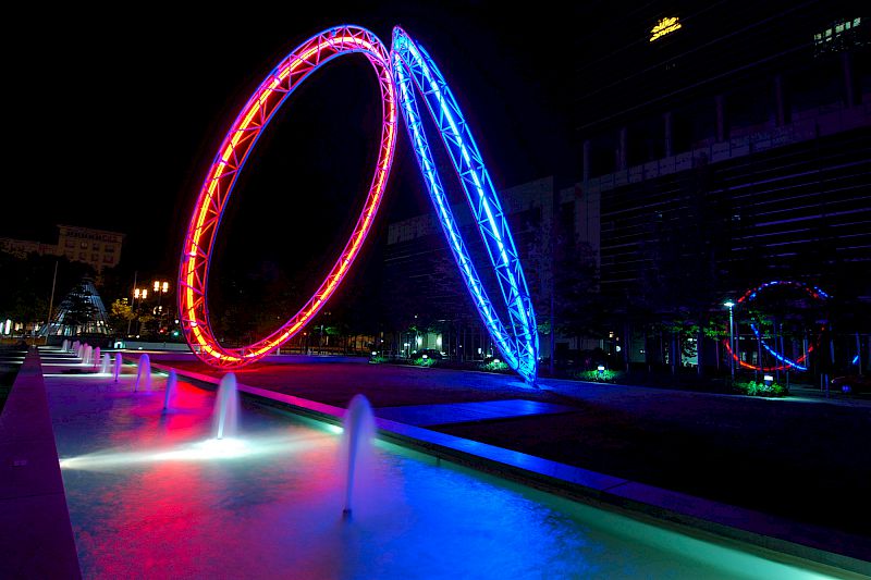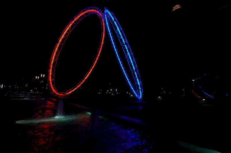 Eine solche Szene ist für das menschliche Auge sehr gut erfassbar, jedoch nicht für digitale Kameras, da diese einen deutlich geringeren Dynamik-Umfang besitzen. Macht man nur eine Aufnahme, muß man sich entscheiden, ob man nun die Lampen oder z.B. das Wasser richtig belichtet haben möchte: